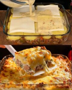 Cuando el antojo de una comida casera, abundante y reconfortante aparece, no hay mejor elección que esta cazuela de carne molida y papas con queso. Se trata de una combinación perfecta de capas de papas tiernas, carne jugosa sazonada y una salsa cremosa de queso, todo horneado hasta alcanzar un dorado irresistible.