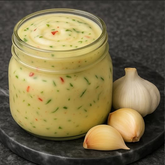 Coloca en una licuadora la leche, los ajos pelados y picados, la sal y el jugo de limón o vinagre.