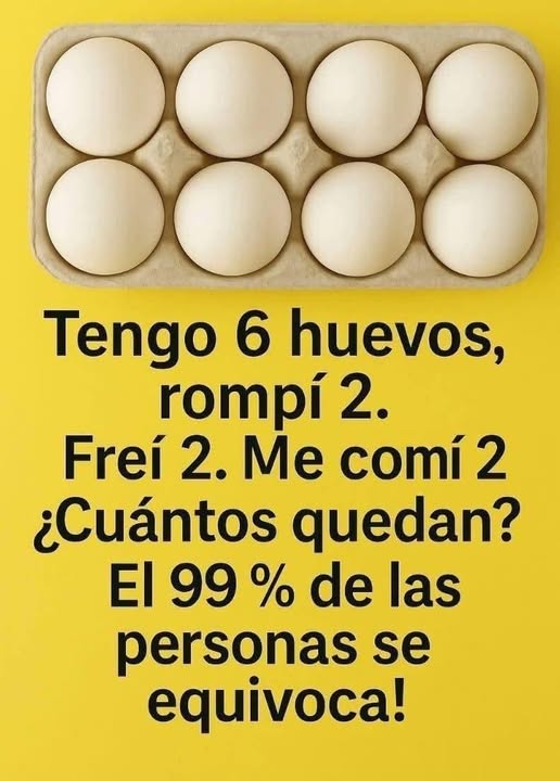 🤯 ¡Y efectivamente! La mayoría de los usuarios responde mal sin pensarlo dos veces. Algunos dicen que quedan 0 huevos, otros que quedan 4, otros 2… pero ¿cuál es la respuesta correcta?