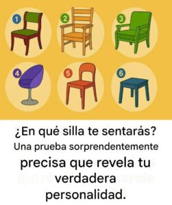 Ante una fila de seis sillas completamente diferentes, ¿cuál elegirías espontáneamente? No hay tiempo para pensar demasiado: sigue tu instinto. Esta pequeña prueba visual, divertida e intrigante a la vez, podría enseñarte más sobre ti mismo de lo que crees. Y cuidado, las apariencias engañan…