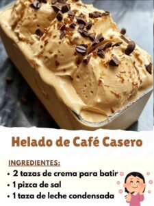Este helado de café combina la dulzura y la intensidad del café en una textura suave y aterciopelada. Lo mejor de todo es que puedes prepararlo con ingredientes sencillos que probablemente ya tienes en casa. Si eres amante del café, esta receta te va a enamorar. ¡Vamos a prepararlo!