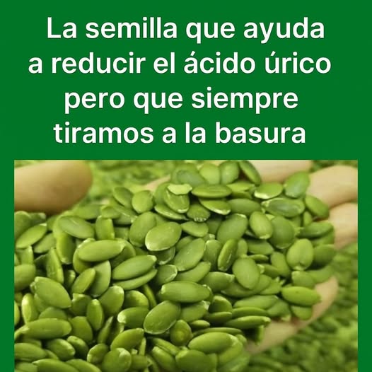 La imagen sugiere que hay una SEMILLA  (en este caso, parecen  semillas de calabaza que todos conocemos o desechamos, pero que podría tener beneficios para controlar los niveles de ácido úrico.