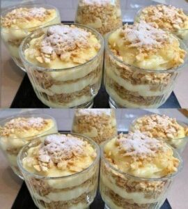 Un favorito para los días de relax, este postre combina capas de migas doradas y crema pastelera cremosa en un vaso para un capricho delicioso y delicioso. ¡Listo en minutos y perfecto para satisfacer tu gusto por lo dulce!