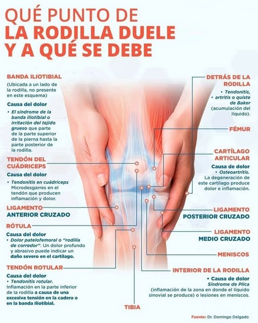 Banda Iliotibial (lado externo, no visible en el esquema) Síndrome de la banda iliotibial: irritación del tejido grueso que va desde la cadera hasta la rodilla.Dolor frecuente en corredores y ciclistas.Tendón del cuádriceps Tendinitis en cuádriceps: microdesgarros que generan inflamación y dolor.Ligamento anterior cruzado (LCA)  Lesiones por giros bruscos o impactos. Puede causar inestabilidad.Rótula Dolor patelofemoral o “rodilla … Read more
