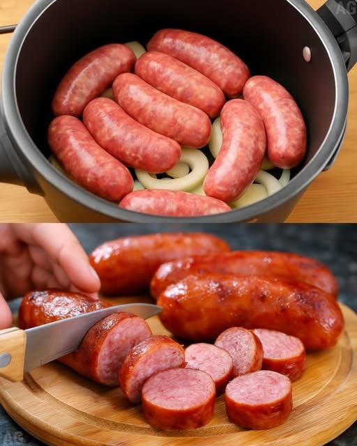 Linguiça Assada na panela de pressão com cebola