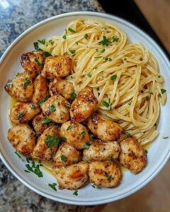 Pollo con Mantequilla de Ajo con Pasta de Limón y Parmesano